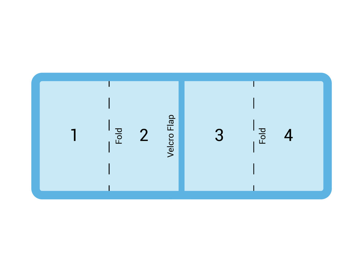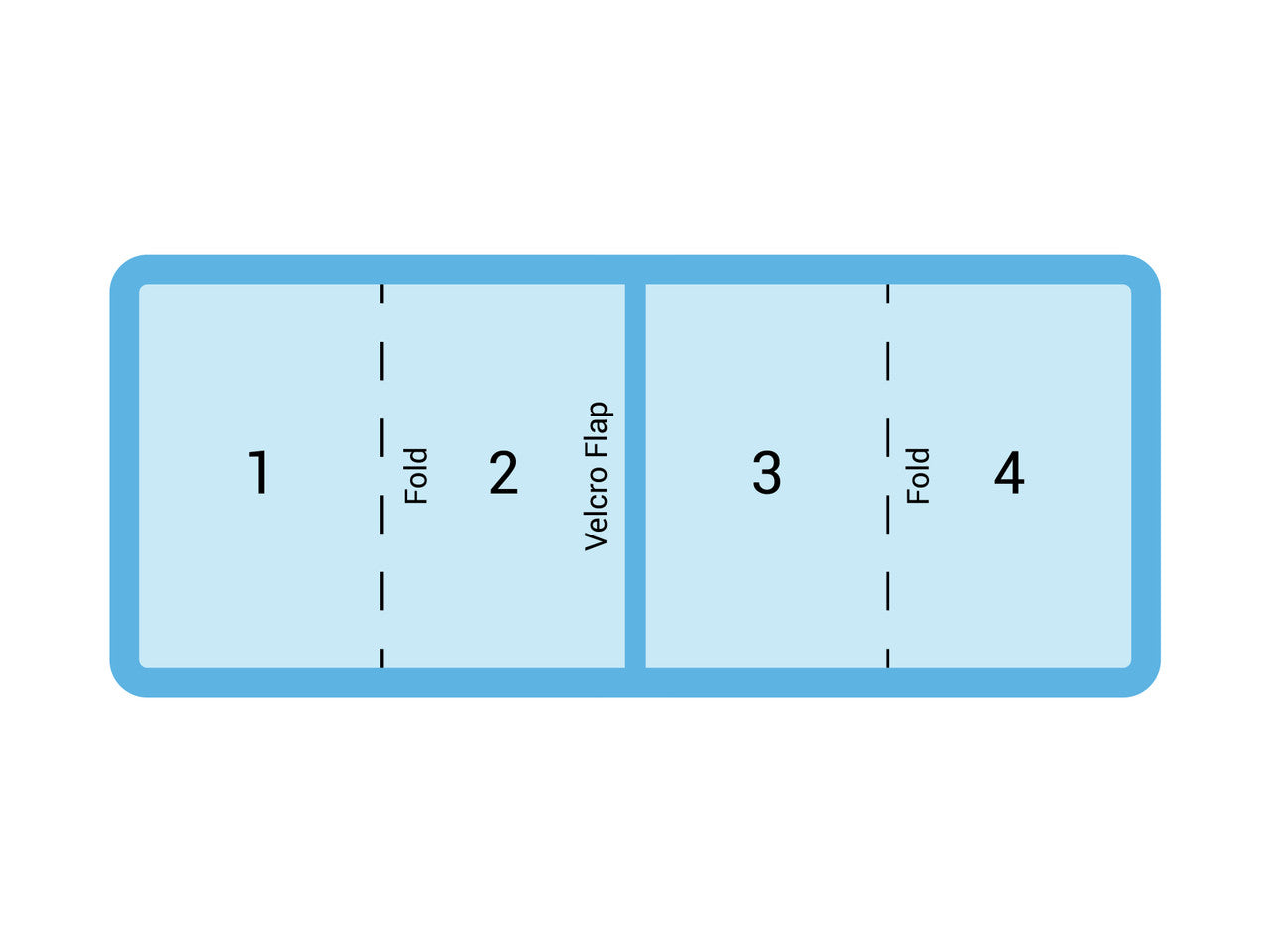 This cover has two bi-folds and center connecting seam is covered by a color matched flap.