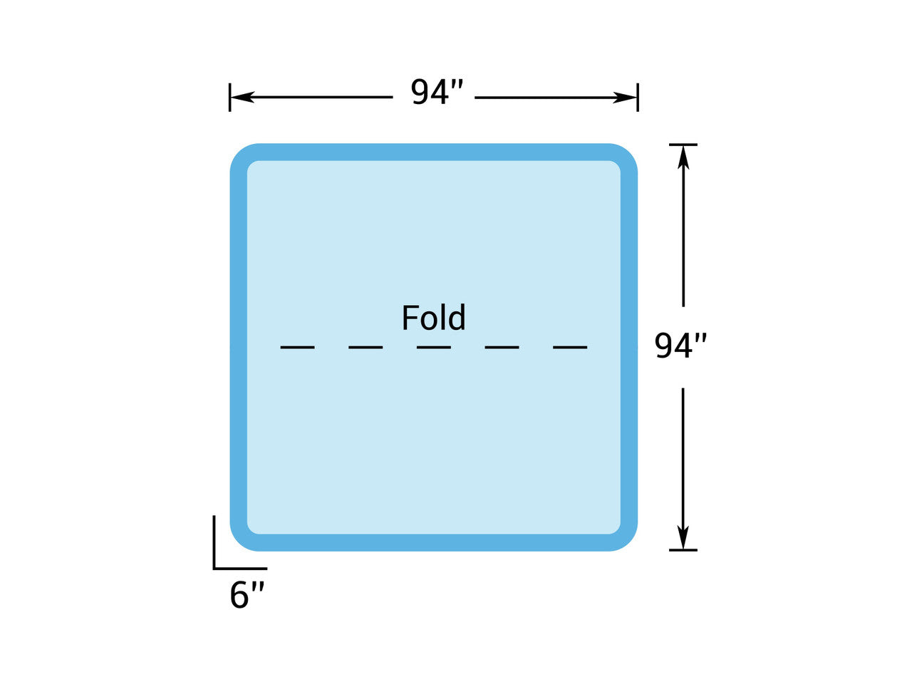 Cover Size: 8' x 8' - 94" x 94" x 6" Radius Corners x 5" Skirt
