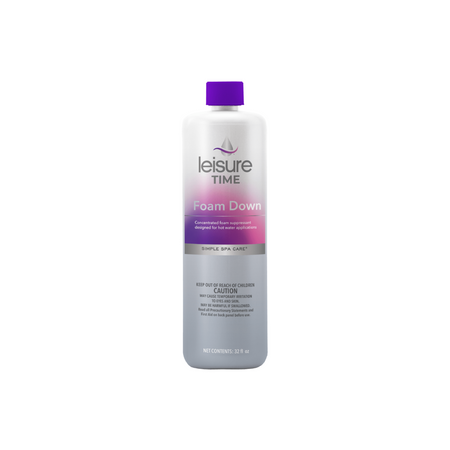 Leisure Time Foam Down is a non-oily, concentrated foam suppressant. This product differs from other foam suppressants because it was specifically designed for use in hot water. It has an easy flip-top lid for accurate and direct application. It is important to note that consistent and excessive foaming indicates water problems. Foam Down is effective in any type of sanitized hot tub water.